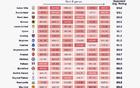 Opta计算英超各队未来6轮赛程难度:维拉最难,利物浦最容易